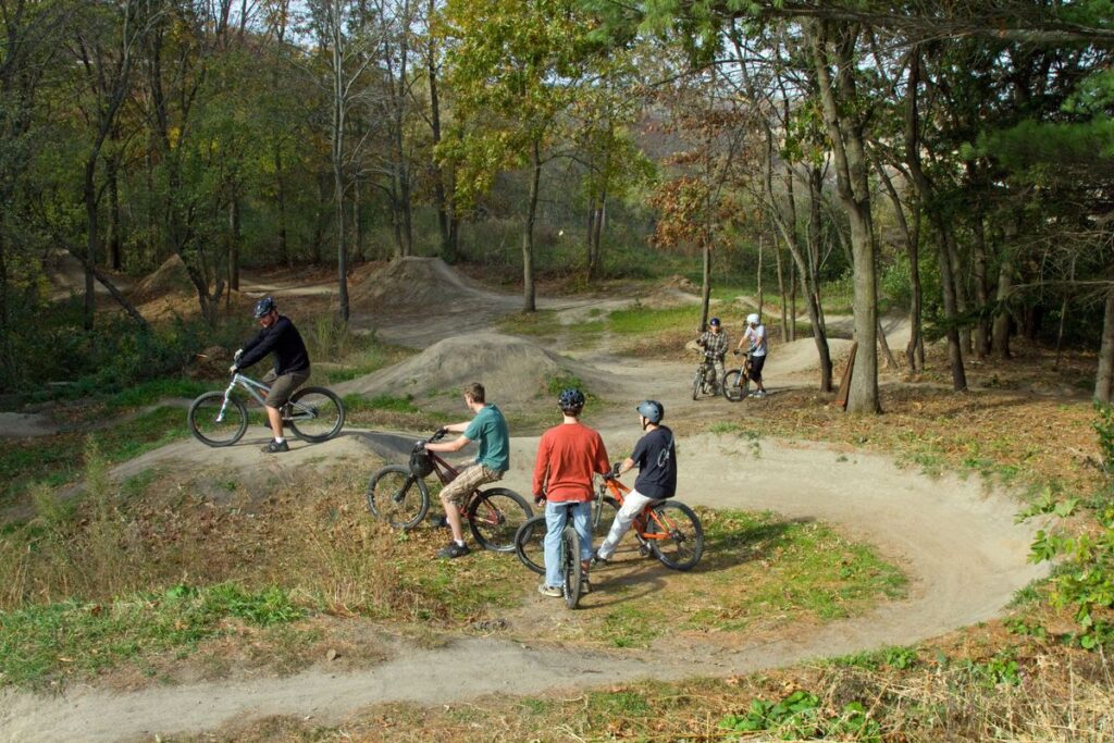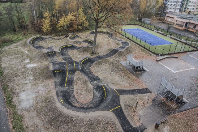 pumptrack ze zhutněné hlíny splývá s přírodním okolí, je však náročný na údržbu