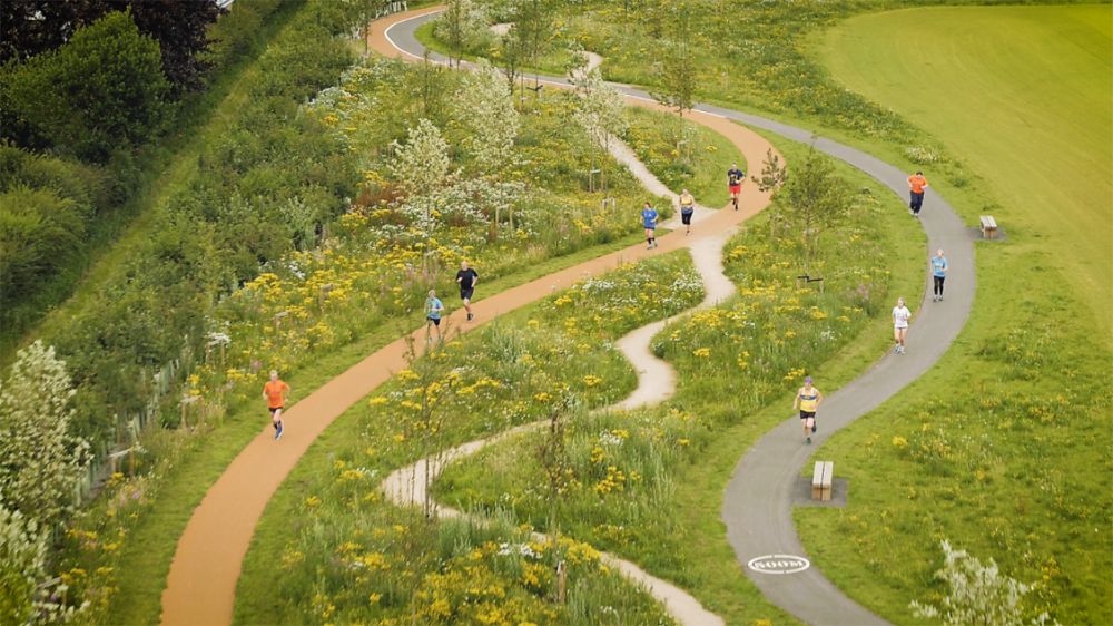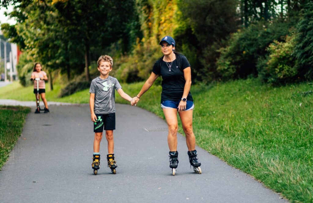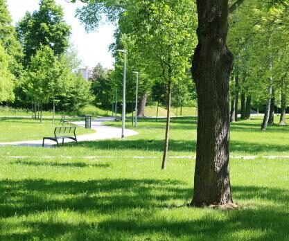 hlavní asfaltová cesta vytváří okruh pro in-line bruslaře, pohyb s kočárky a další uživatele