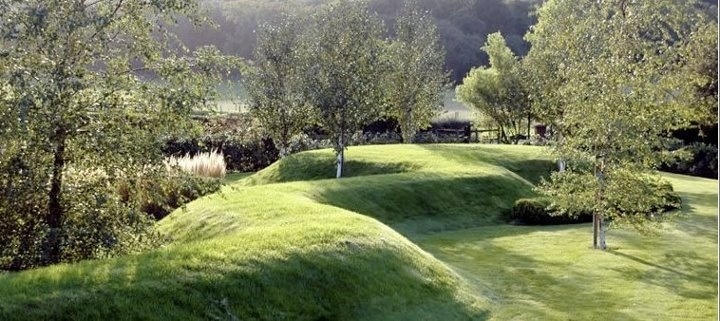 systém cest tvoří hierarchii, prostupuje trávníkem i loukou