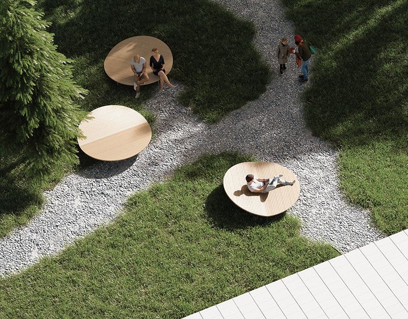 navržená lehátka vyzývají k pobytu na slunných místech v parku