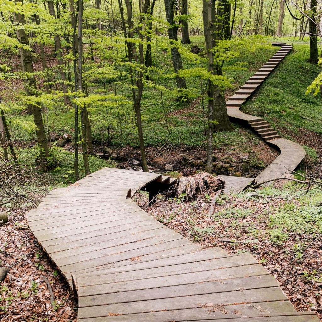 dřevěné chodníky vedoucí k břehu řeky Střely