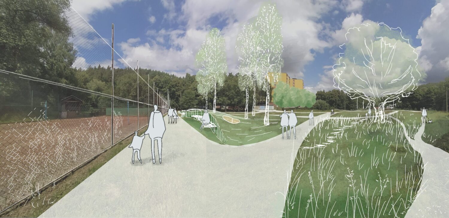 nový parkový prostor navazující na tenisové hřiště